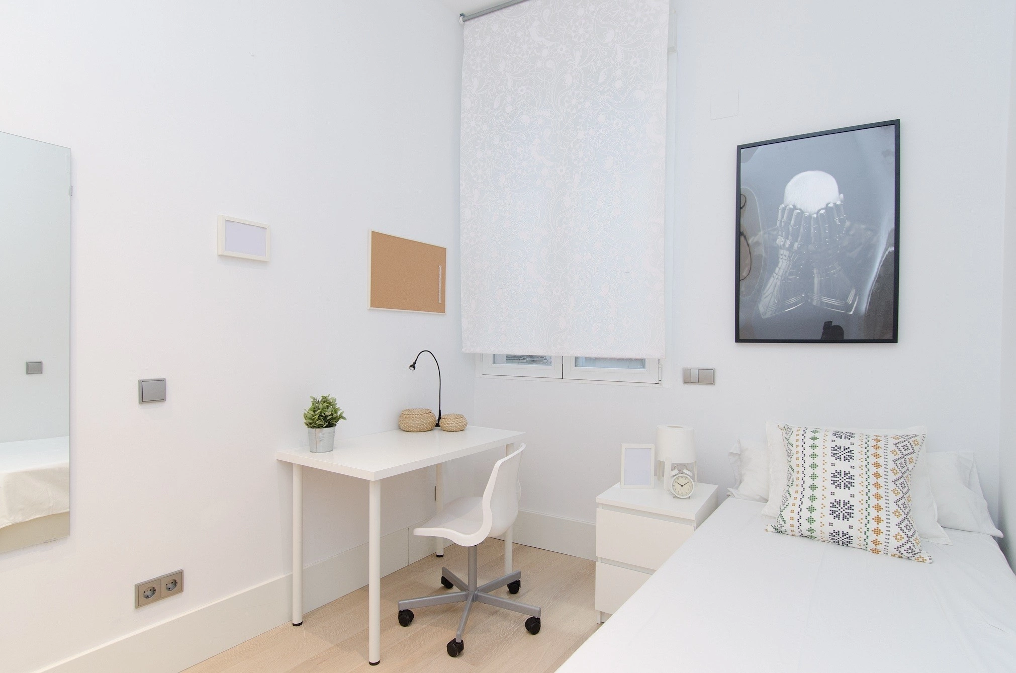 A spacious apartment for students located in the center of Madrid featuring five bedrooms and three bathrooms, one of which is en suite. This place offers comfort and functionality for student life. The kitchen is fully equipped with a refrigerator, oven, microwave, dishwasher, and a large dining table, making meal preparation and shared time among flatmates effortless. With a layout that provides privacy and convenience, this apartment offers an ideal environment for studying and university life in the heart of the city.
