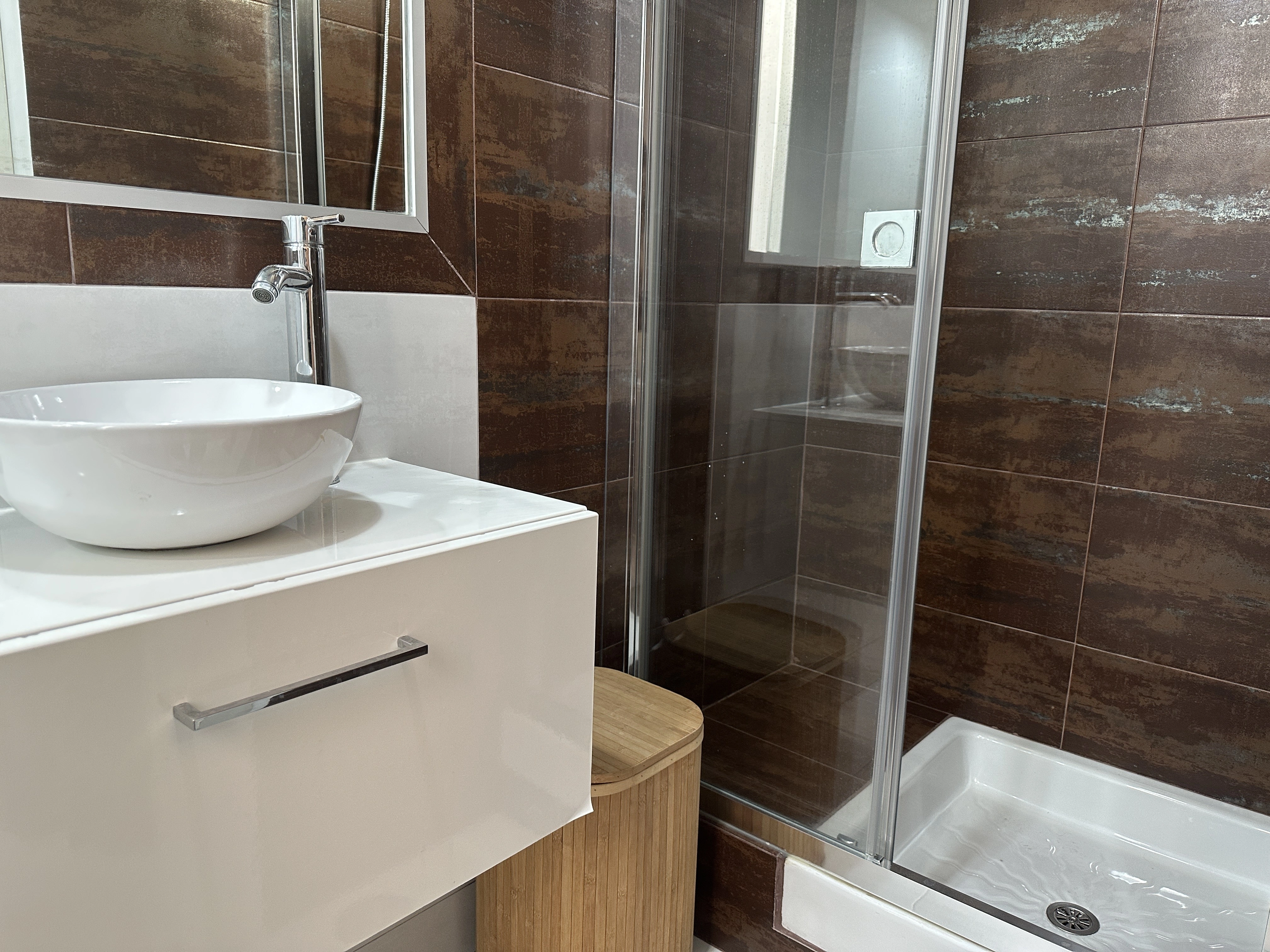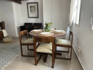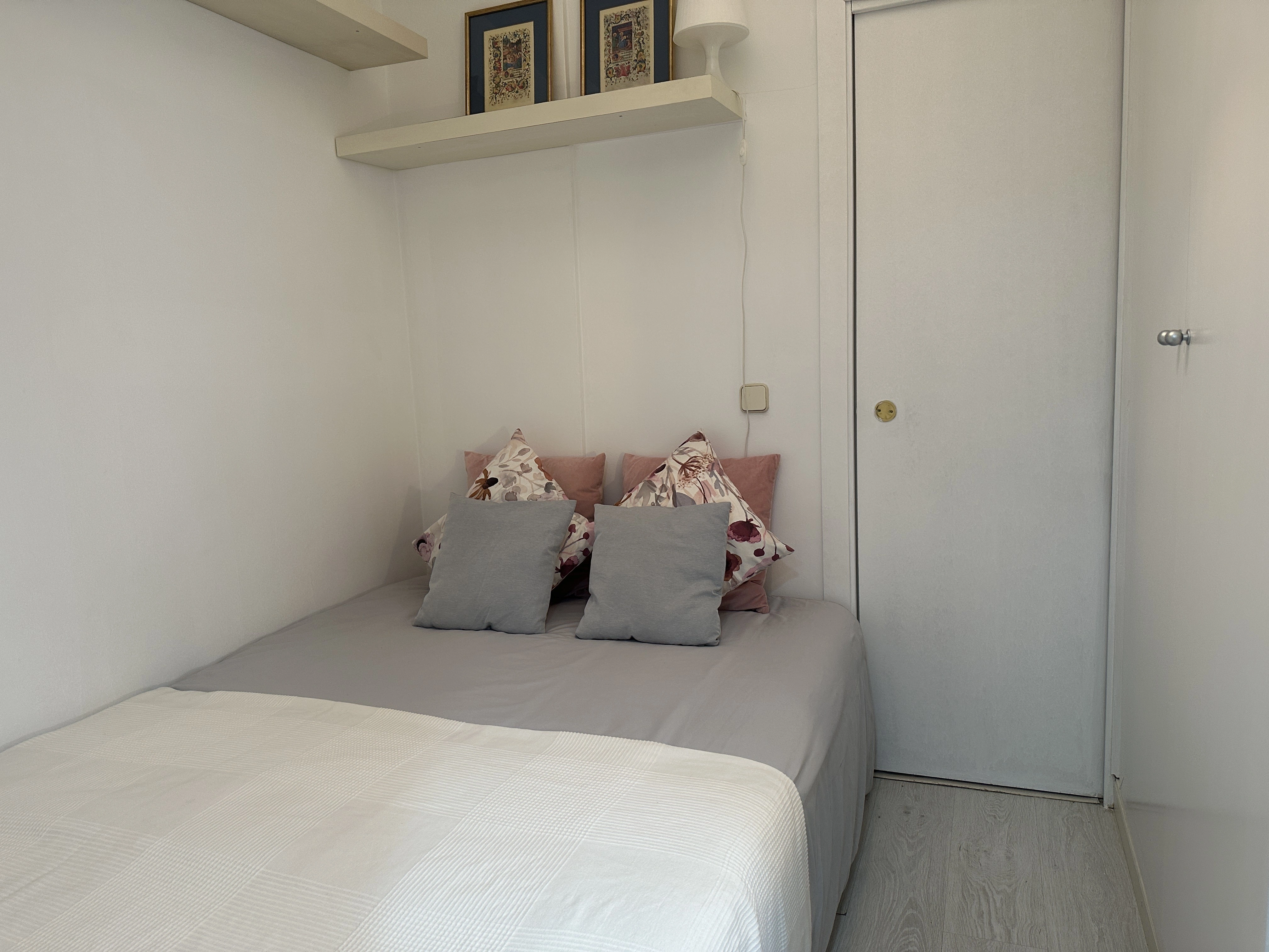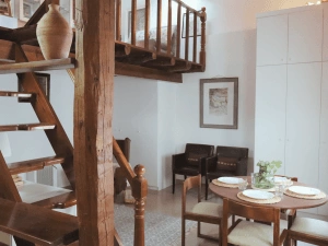 This charming apartment in the Argüelles neighborhood provides the perfect space for living and studying comfortably in Madrid. The bathroom is modern and functional and has a toilet, a sink, and a shower. If you are looking for a cozy space to relax, the loft is a perfect place to sit and read a book on the sofa. Next to the bookshelves in the loft area there is a desk for studying. Just downstairs from the loft is the spacious living room where you can enjoy time with others by watching a movie on the television. The dining area is next to bright windows to allow natural light to fill the space. The kitchen is equipped with a refrigerator, ceramic hob, washer, and plenty of cabinets to store food and other utensils.