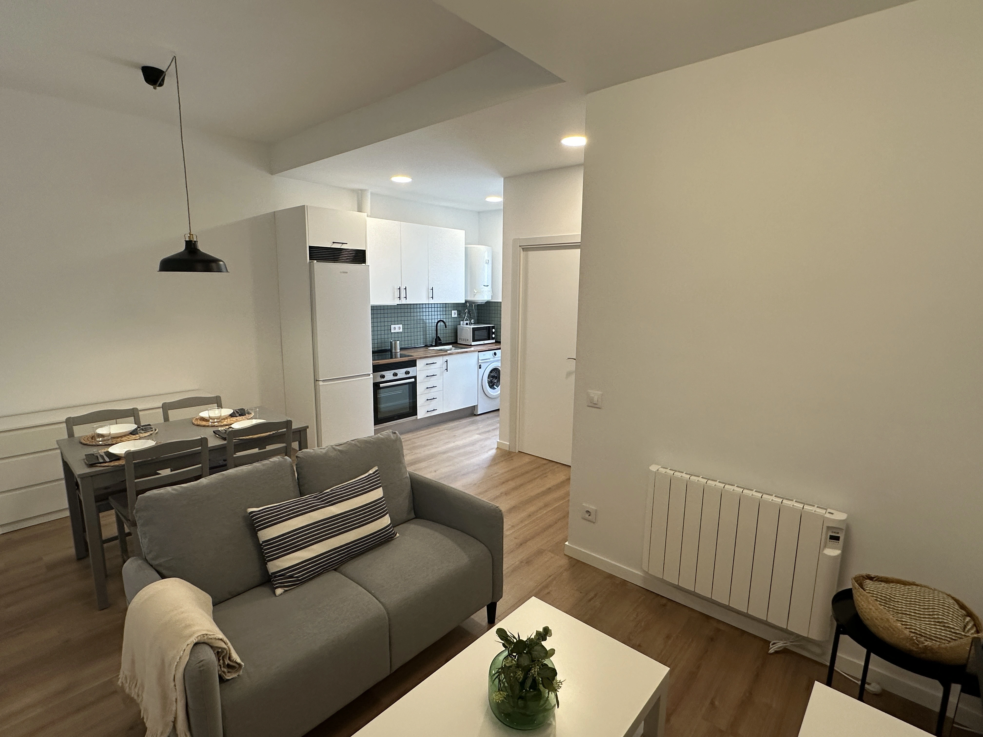 Looking for a modern, newly renovated apartment in Madrid that’s move-in ready? This stylish flat, managed by Madrideasy, a trusted real estate agency in Madrid specialized in student rentals, is the perfect choice for students and young professionals who want comfort and functionality in one place. The property features an open-plan living and dining area, ideal for relaxing or socializing, with a sofa, coffee table, TV, and a dining table with 4 chairs. The kitchen is fully equipped with all essential utensils, as well as an oven, microwave, fridge, and washing machine, making everyday life easy from day one. The modern bathroom includes a shower, toilet, and sink. There are two bedrooms: one with a double bed and the other with a single bed, each with a wardrobe, desk and chair, and access to a balcony, providing plenty of natural light and a pleasant atmosphere. If you’re looking for student housing in Madrid that’s newly renovated, comfortable, and professionally managed, this is an excellent option.