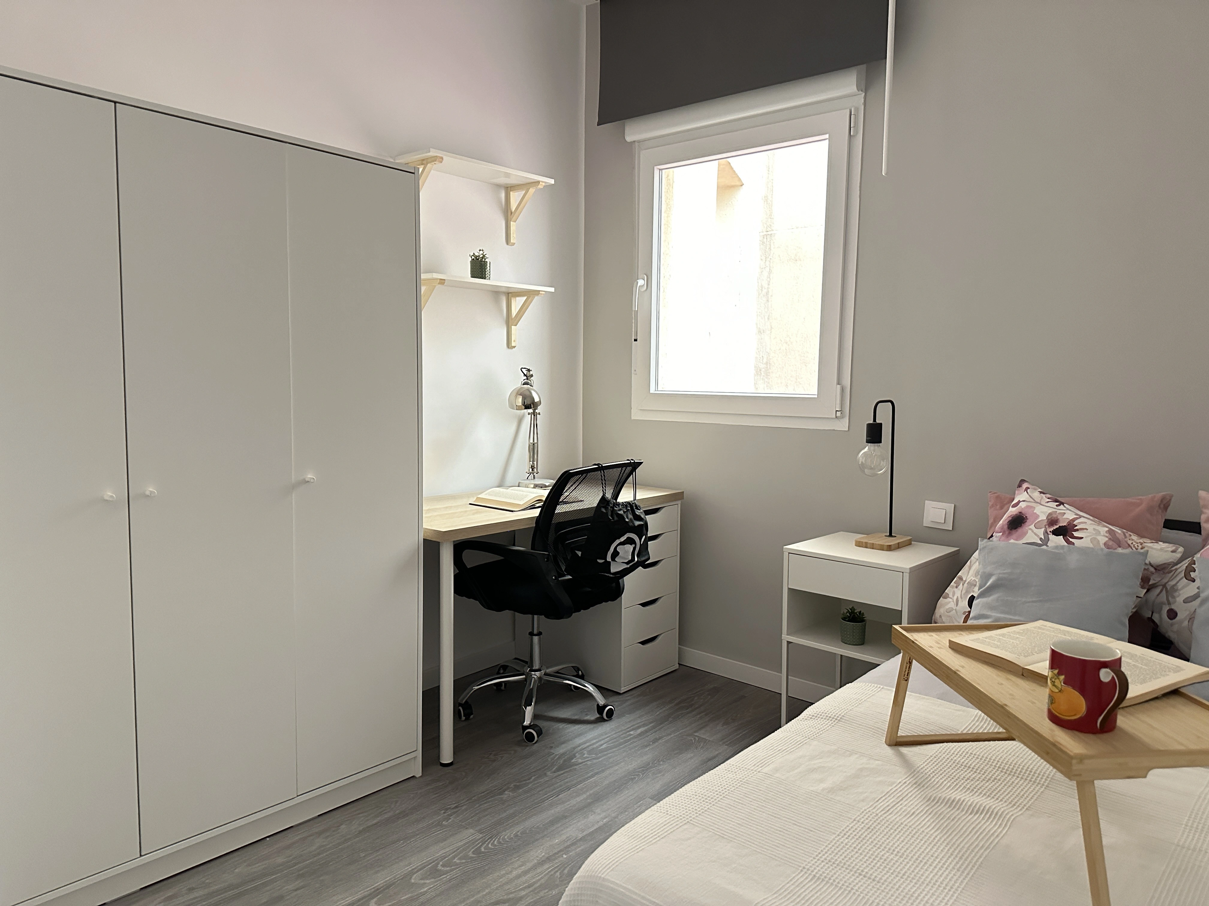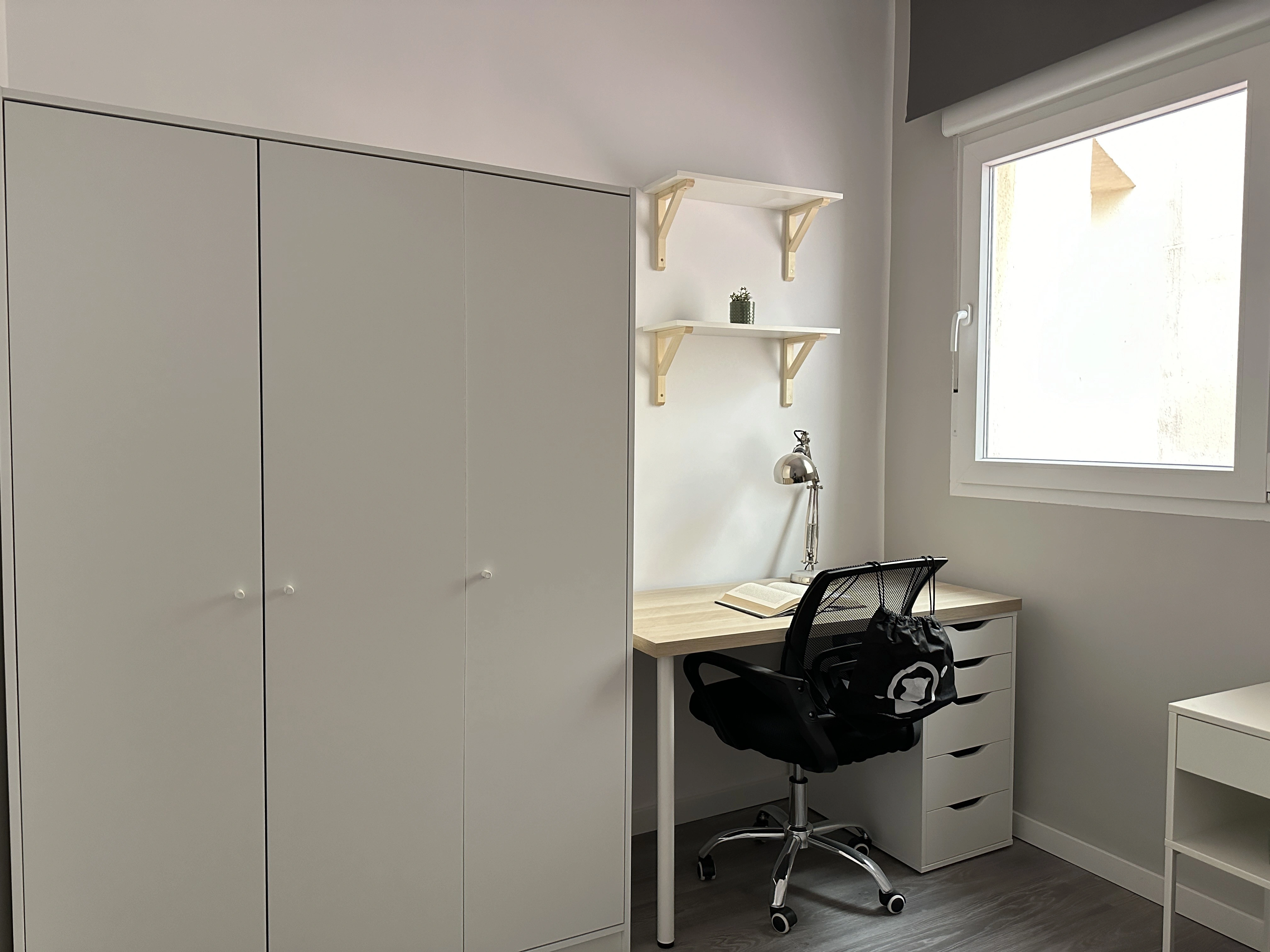 This spacious apartment is perfect for large groups, featuring 10 bedrooms and 3 bathrooms designed with functionality and comfort in mind. Each bedroom is fully equipped to provide comfort and privacy for its occupants. The rooms come with a bed, desk, and wardrobe. Bedrooms 1, 2, 7, and 8 have 135 cm beds, offering extra space and comfort for those who prefer larger beds. Bedroom 9 is furnished with a 90 cm bed, while the remaining bedrooms are equipped with 105 cm beds, providing a good range of bed sizes to meet different needs.