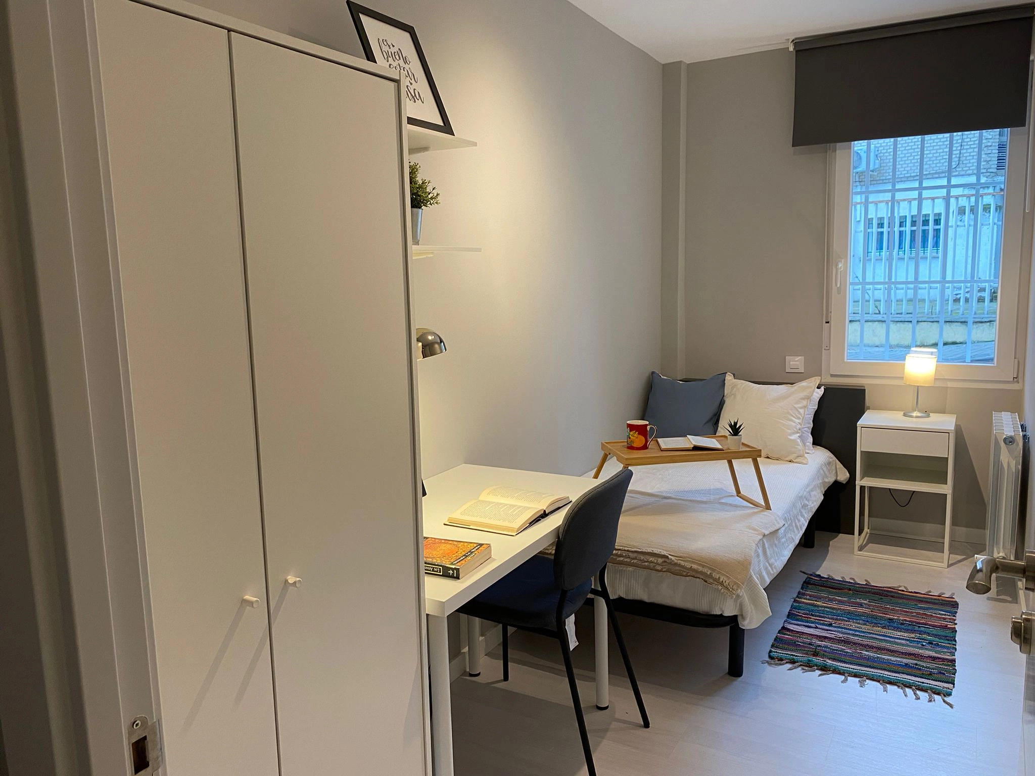 Este apartamento está diseñado específicamente para estudiantes y jóvenes profesionales, ofreciendo un ambiente cómodo y funcional para el día a día. Cuenta con 4 habitaciones individuales, lo que proporciona espacio suficiente para una cama, escritorio y armario, ideal para aquellos que necesitan un lugar privado para estudiar o trabajar.