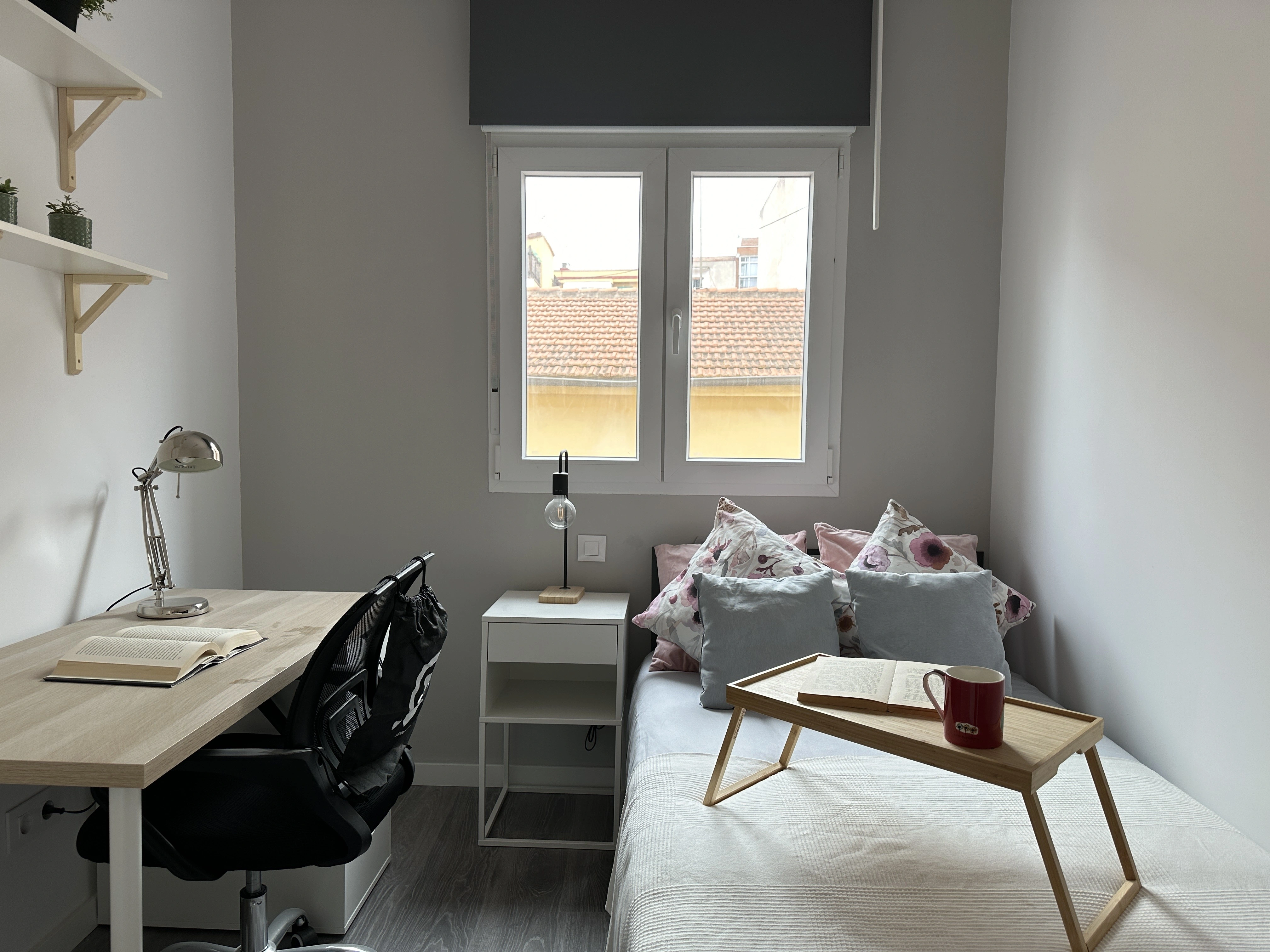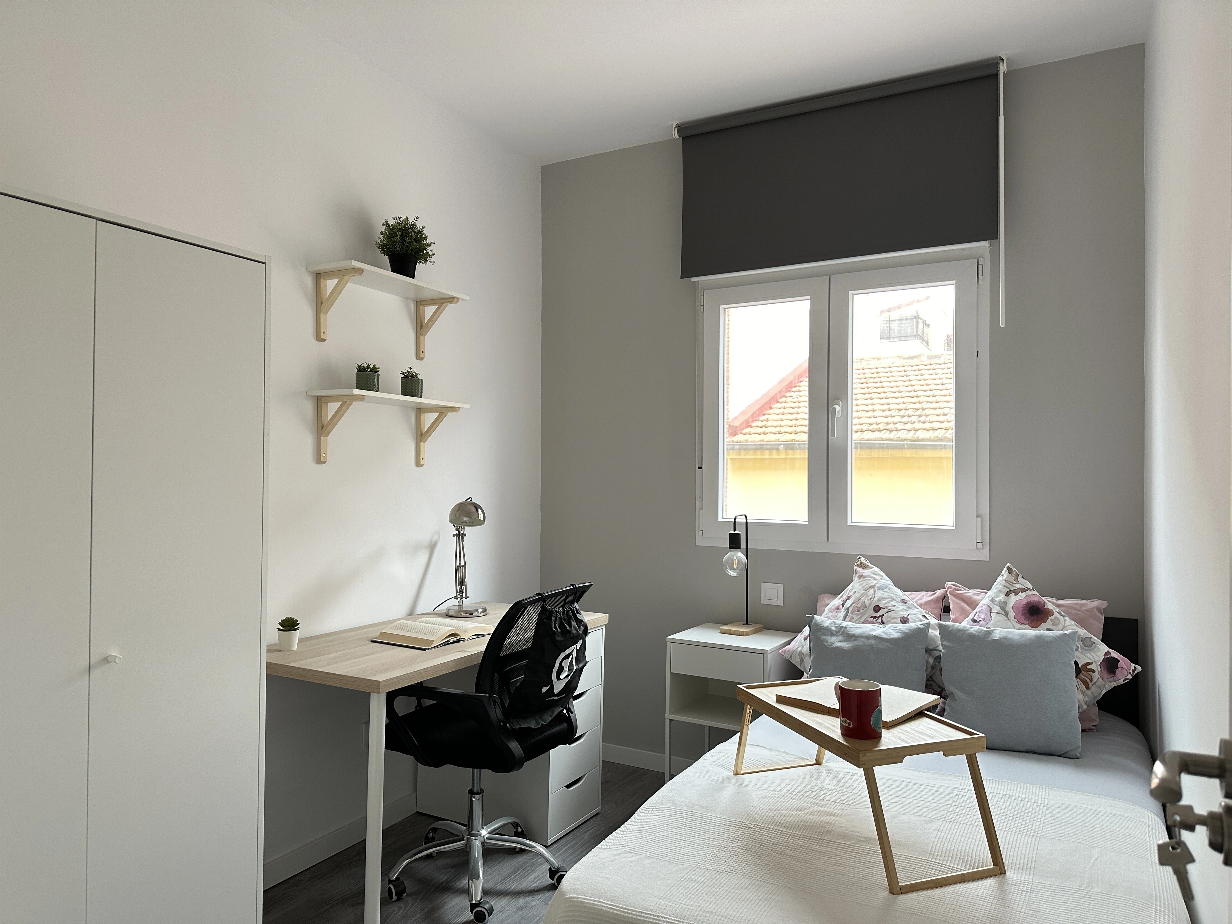 Este amplio apartamento, ideal para grupos grandes, cuenta con 10 habitaciones y 3 baños distribuidos en un diseño funcional y bien pensado. Cada una de las habitaciones está completamente equipada para proporcionar comodidad y privacidad a los inquilinos. Las habitaciones disponen de cama, escritorio y armario. Las habitaciones 1, 2, 7 y 8 cuentan con una cama de 135 cm, perfecta para quienes buscan más espacio y comodidad al dormir. La habitación 9 está equipada con una cama de 90 cm, mientras que las habitaciones restantes tienen camas de 105 cm, ofreciendo así una buena variedad de tamaños de camas para diferentes necesidades.