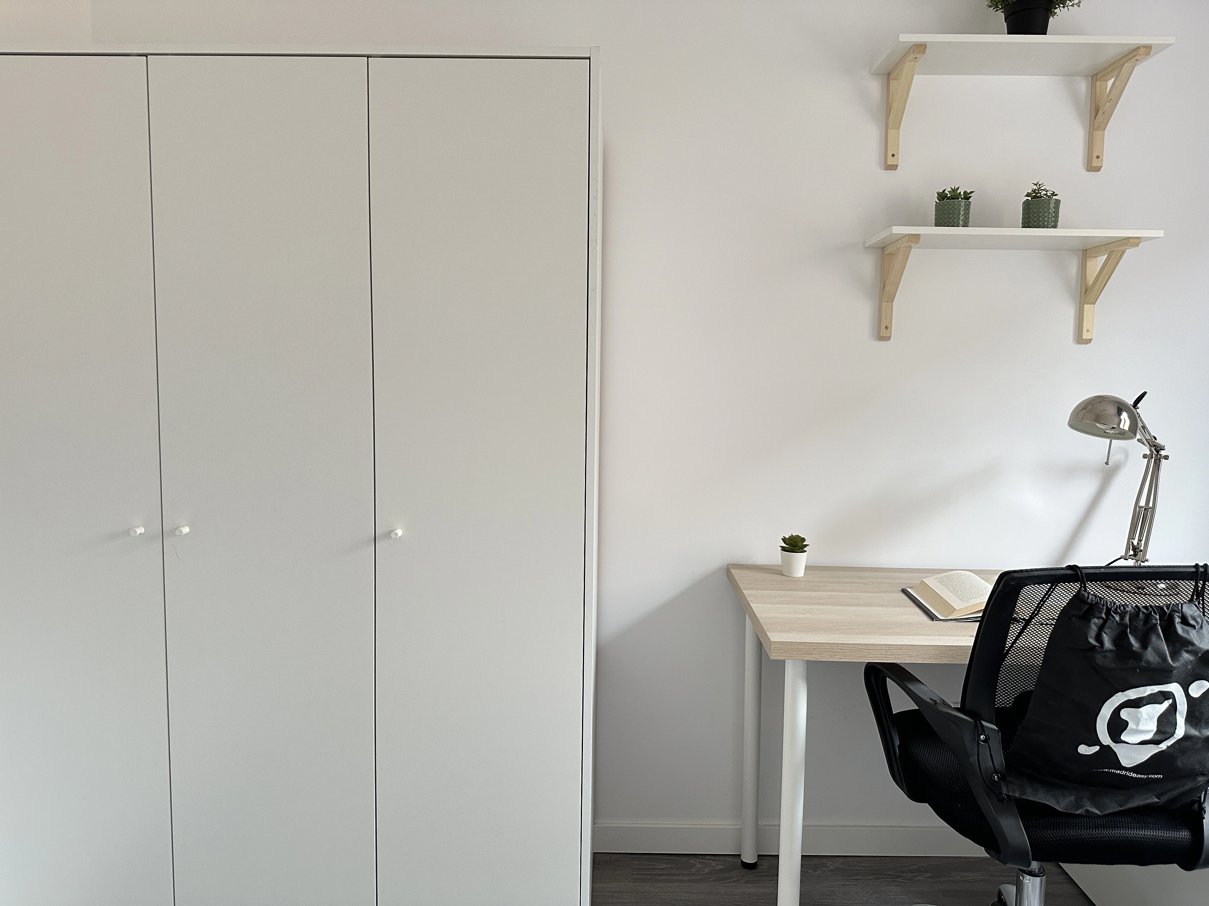 Este apartamento es ideal para compartir, proporcionando tanto áreas comunes bien diseñadas para socializar, como espacios privados bien equipados en cada habitación para mayor confort.
