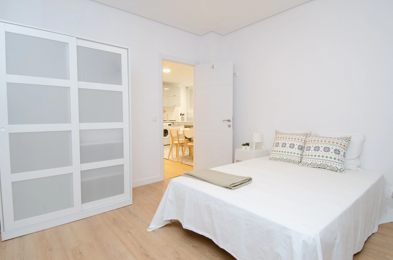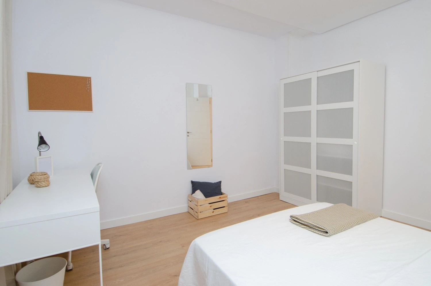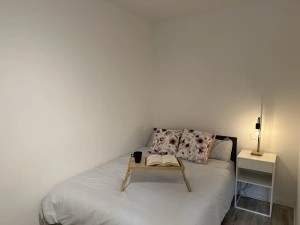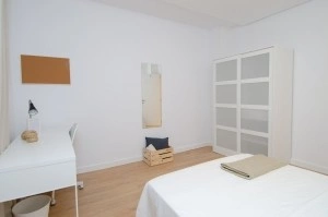 Este elegante apartamento cuenta con ocho dormitorios y tres baños. El salón es amplio y perfecto para disfrutar con tus amigos. El comedor de la cocina dispone de una gran mesa para comer con tus compañeros de piso o con las visitas. Cada uno de los baños está equipado con un inodoro, una ducha y un lavabo con almacenamiento. La cocina está dotada de los electrodomésticos necesarios, incluyendo: nevera, vitrocerámica, lavadora, horno, microondas y armarios para almacenar alimentos y utensilios.