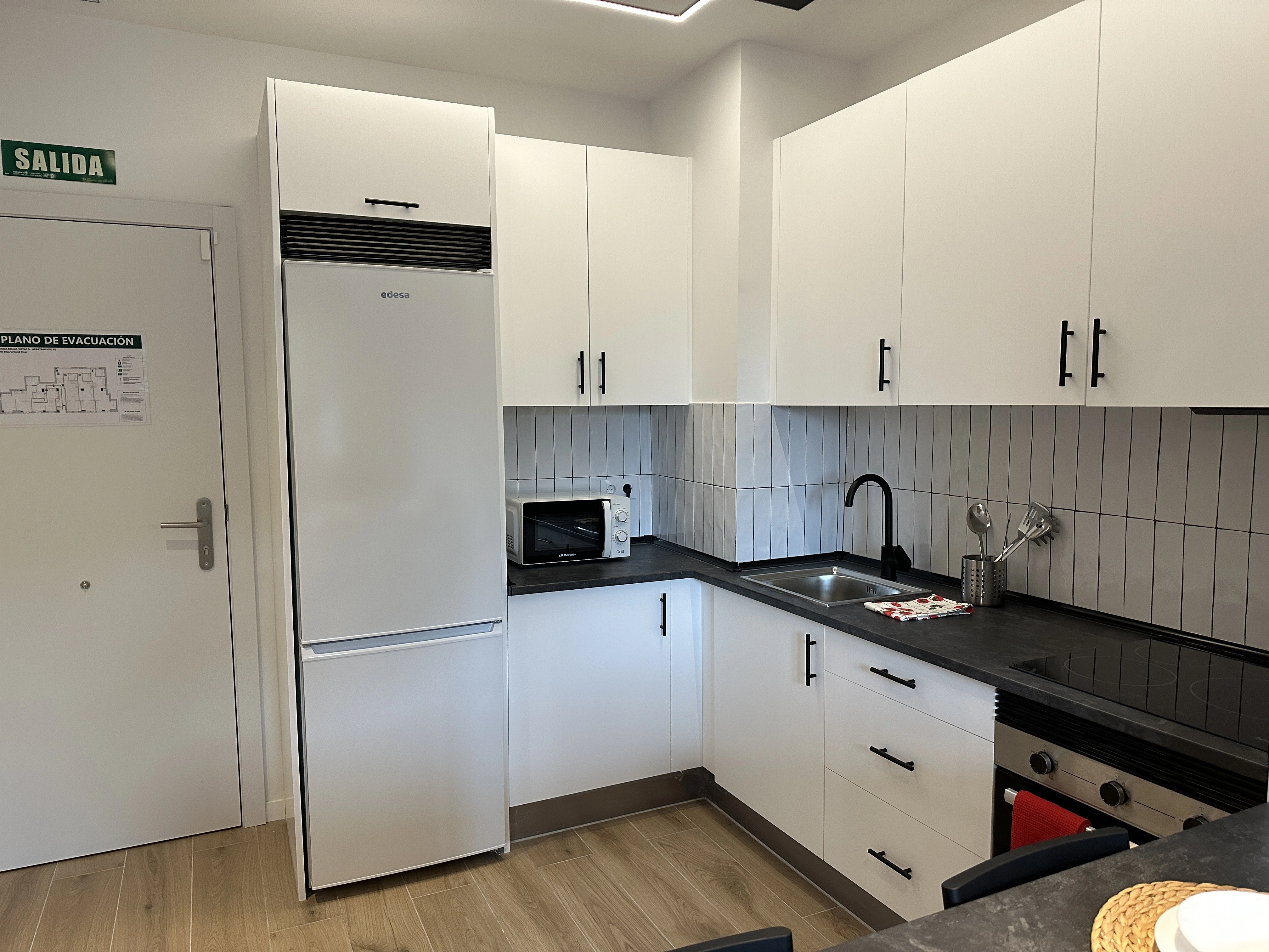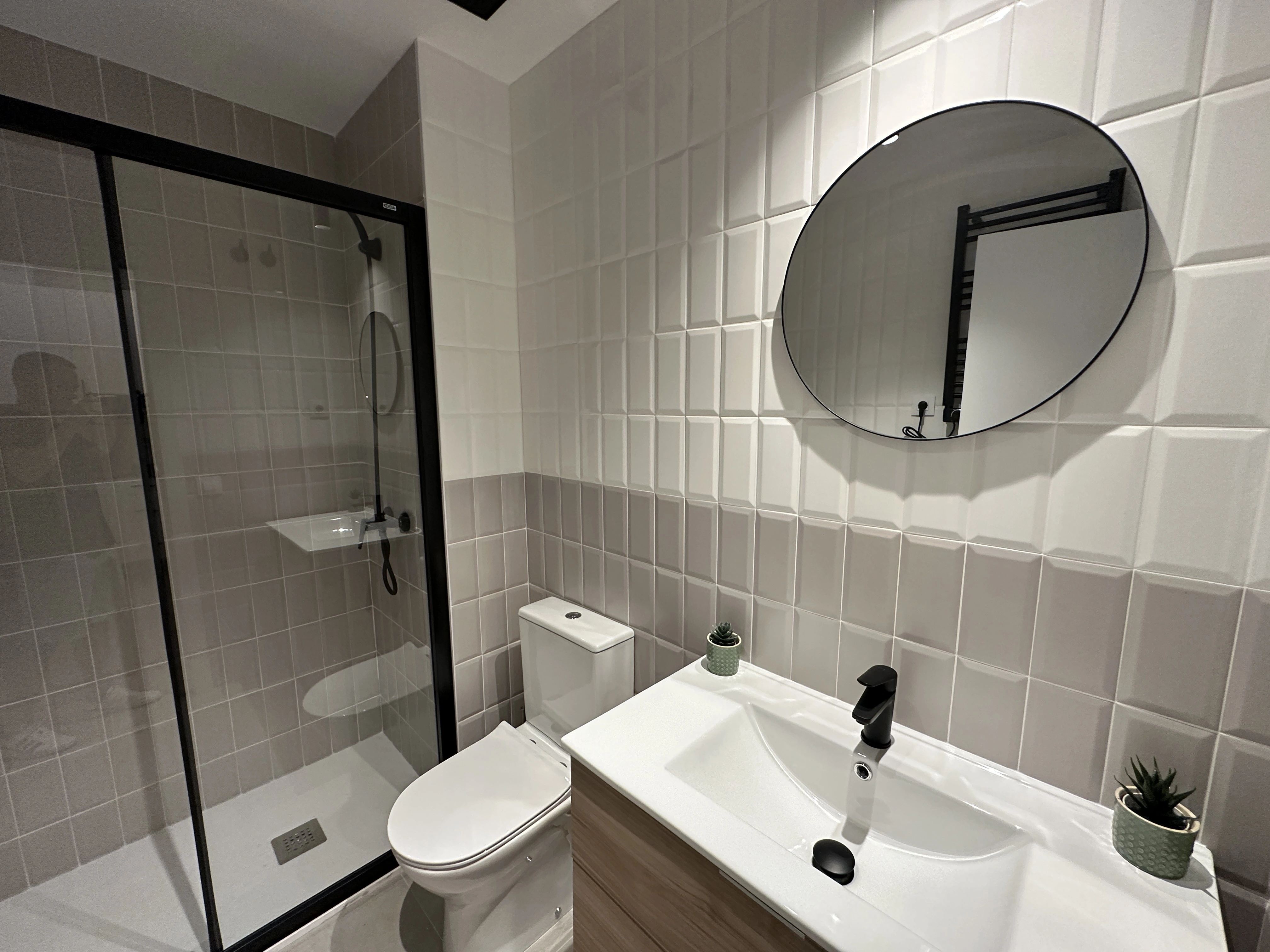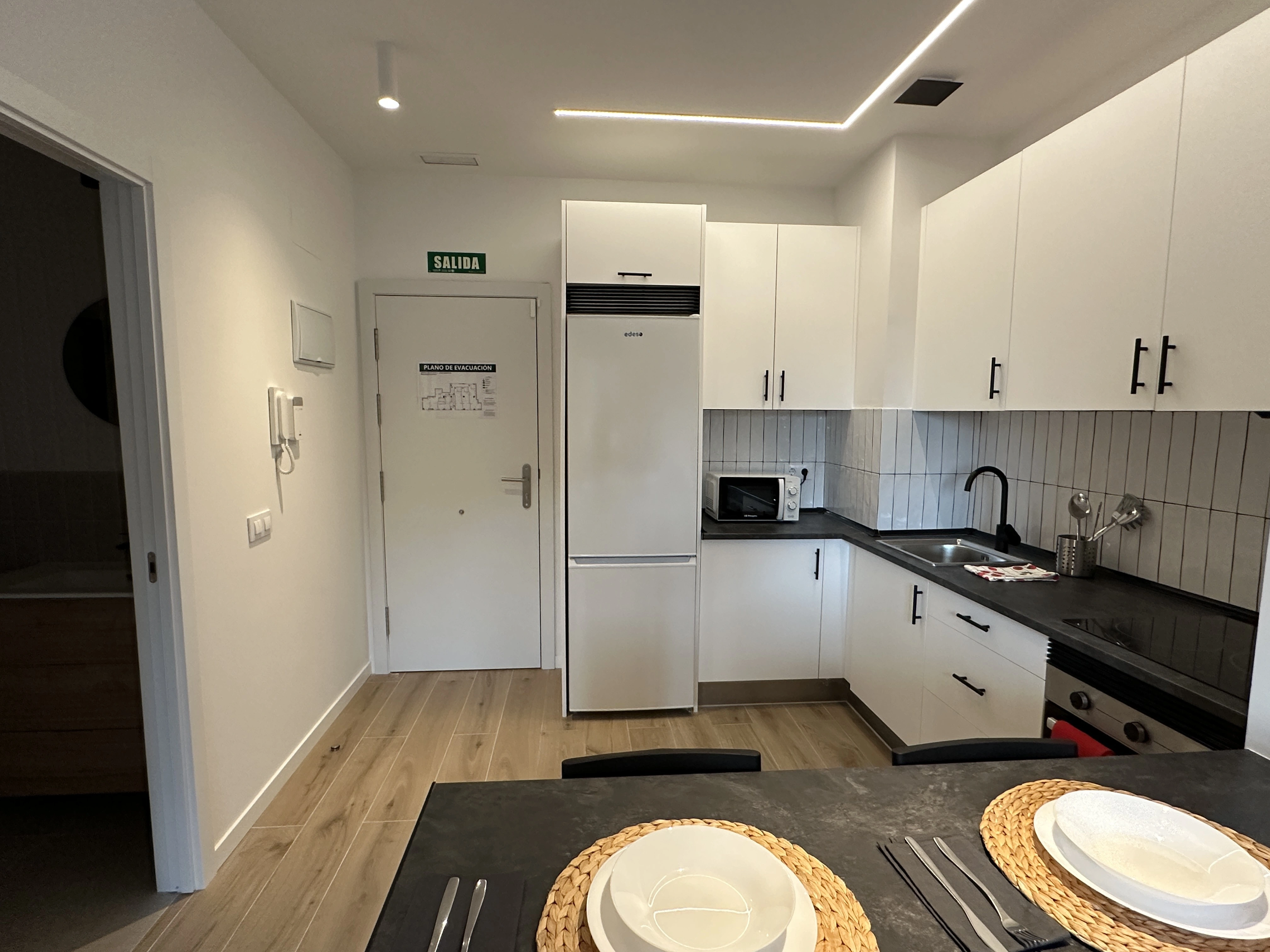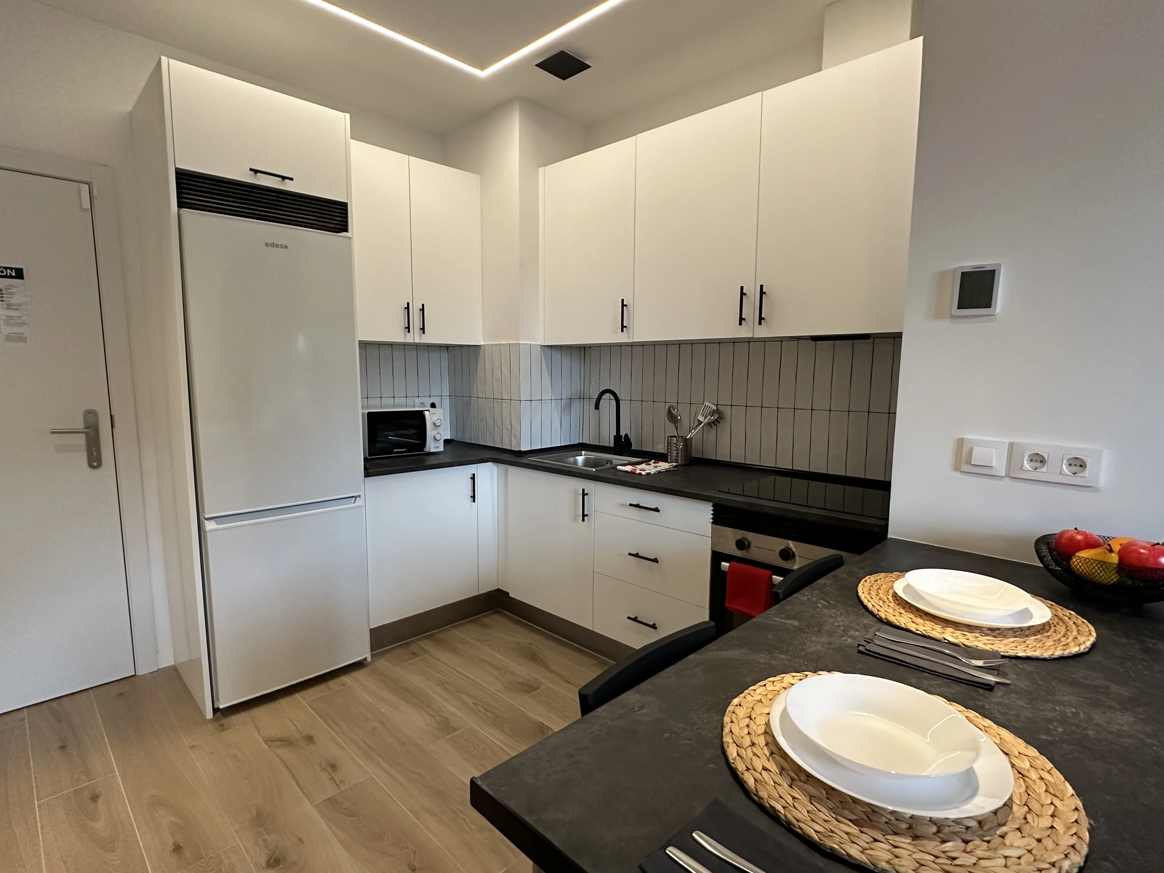 ¿Quieres vivir en un estudio moderno y recién reformado en Madrid? Este espacio, gestionado por Madrideasy, una gestora inmobiliaria en Madrid especializada en alquiler para estudiantes y jóvenes profesionales, es perfecto para quienes buscan un ambiente acogedor y práctico. El salón-cocina de concepto abierto incluye televisión, mesa de centro, sofá y una barra con sillas, ideal para comer o trabajar cómodamente. La cocina dispone de nevera, horno, microondas, vitrocerámica y amplios espacios de almacenamiento. La zona de descanso, integrada en el mismo ambiente, cuenta con una cama, dos mesitas de noche y un armario grande, ofreciendo un espacio organizado y funcional. Además, el baño completo está equipado con plato de ducha, inodoro, lavabo y espejo. Si buscas un alquiler moderno y bien ubicado en Madrid, este estudio es una excelente alternativa.