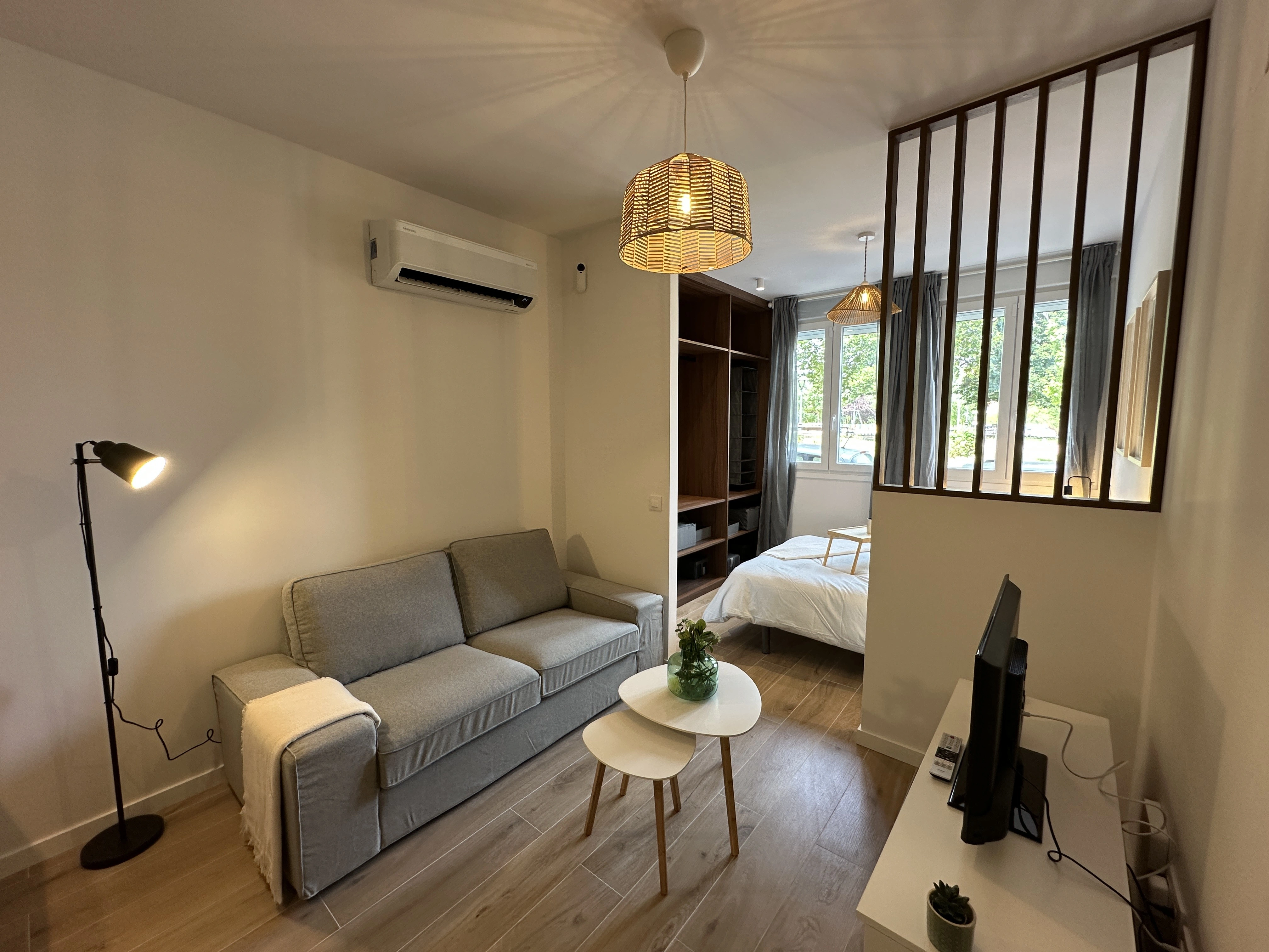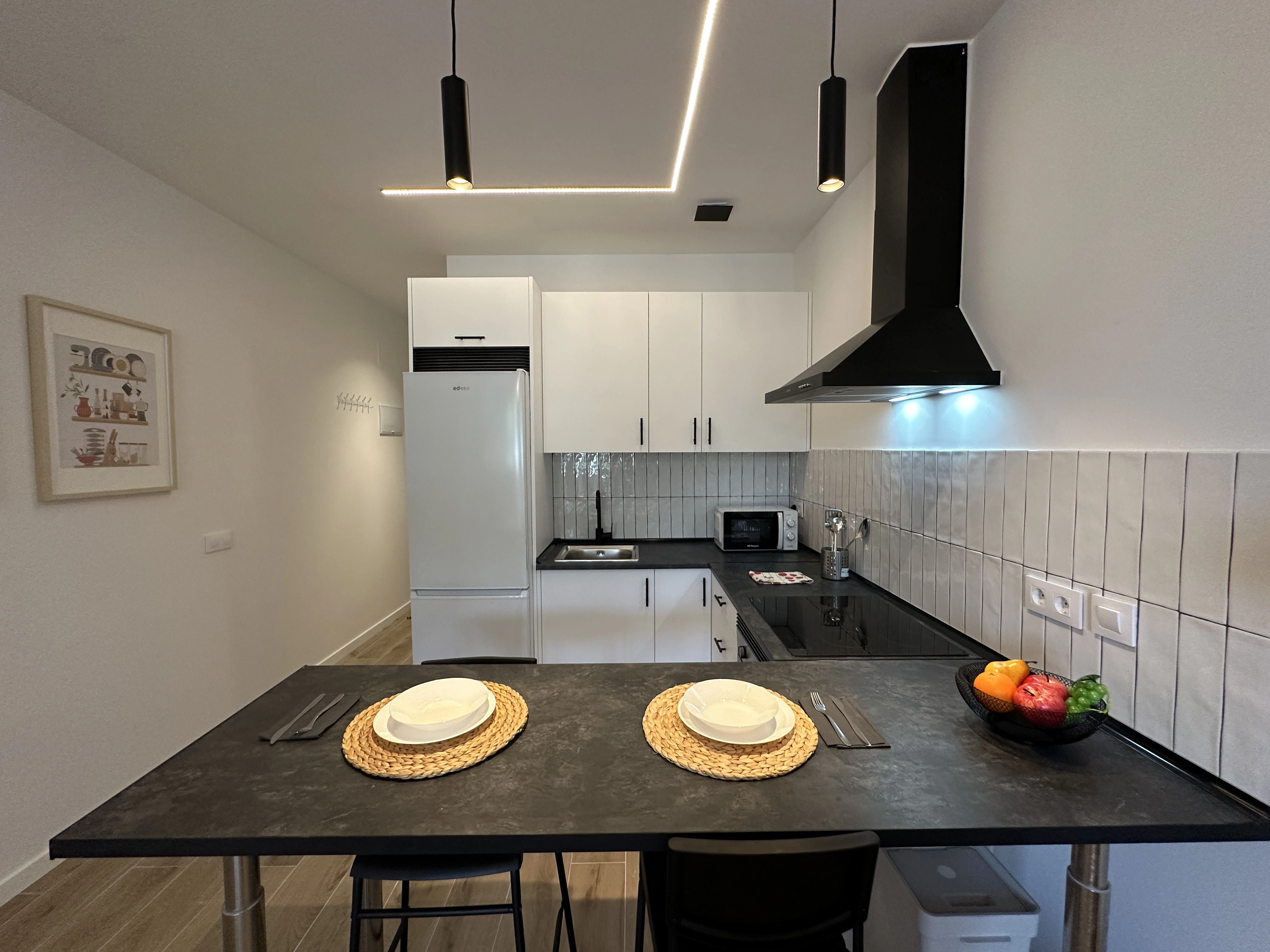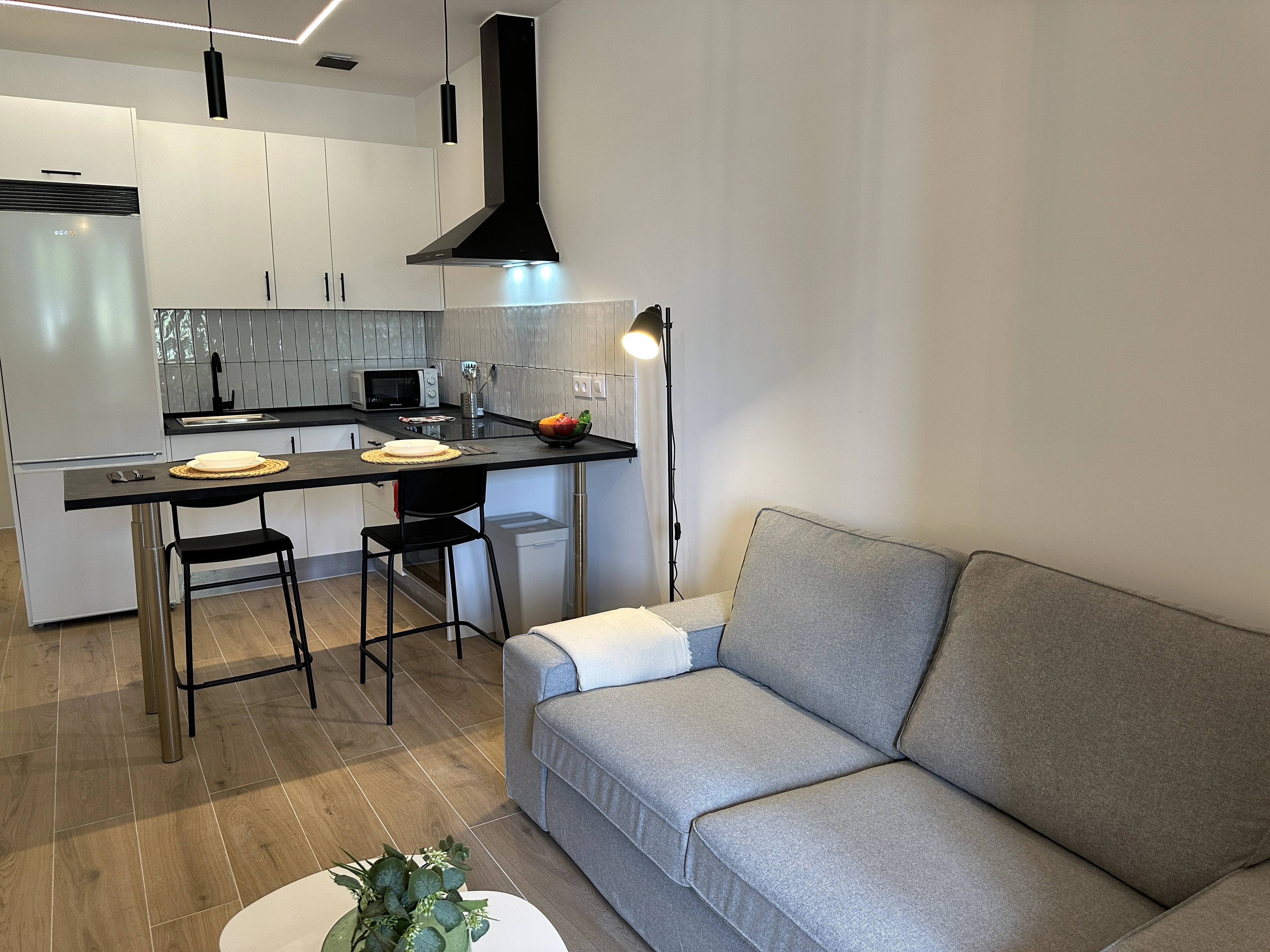 ¿Buscas un estudio moderno y funcional en Madrid? En Madrideasy, tu gestora inmobiliaria en Madrid especializada en alquiler para estudiantes y jóvenes profesionales, te ofrecemos este estudio recién renovado, diseñado para quienes valoran la comodidad y el diseño en un solo espacio. Cuenta con un salón-cocina de concepto abierto, con televisión, mesa de centro, sofá y una barra con varias sillas perfecta para comer o estudiar. La cocina está equipada con nevera, horno, microondas, vitrocerámica y espacio de almacenamiento, lista para que puedas instalarte desde el primer día. En la misma estancia se encuentra la cama, acompañada de dos mesitas de noche y un armario grande, ofreciendo una distribución práctica y luminosa. El baño moderno dispone de plato de ducha, inodoro, lavabo y espejo. Una opción ideal si buscas un alquiler en Alcorcón, bien ubicado, recién renovado y gestionado por profesionales.