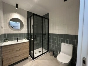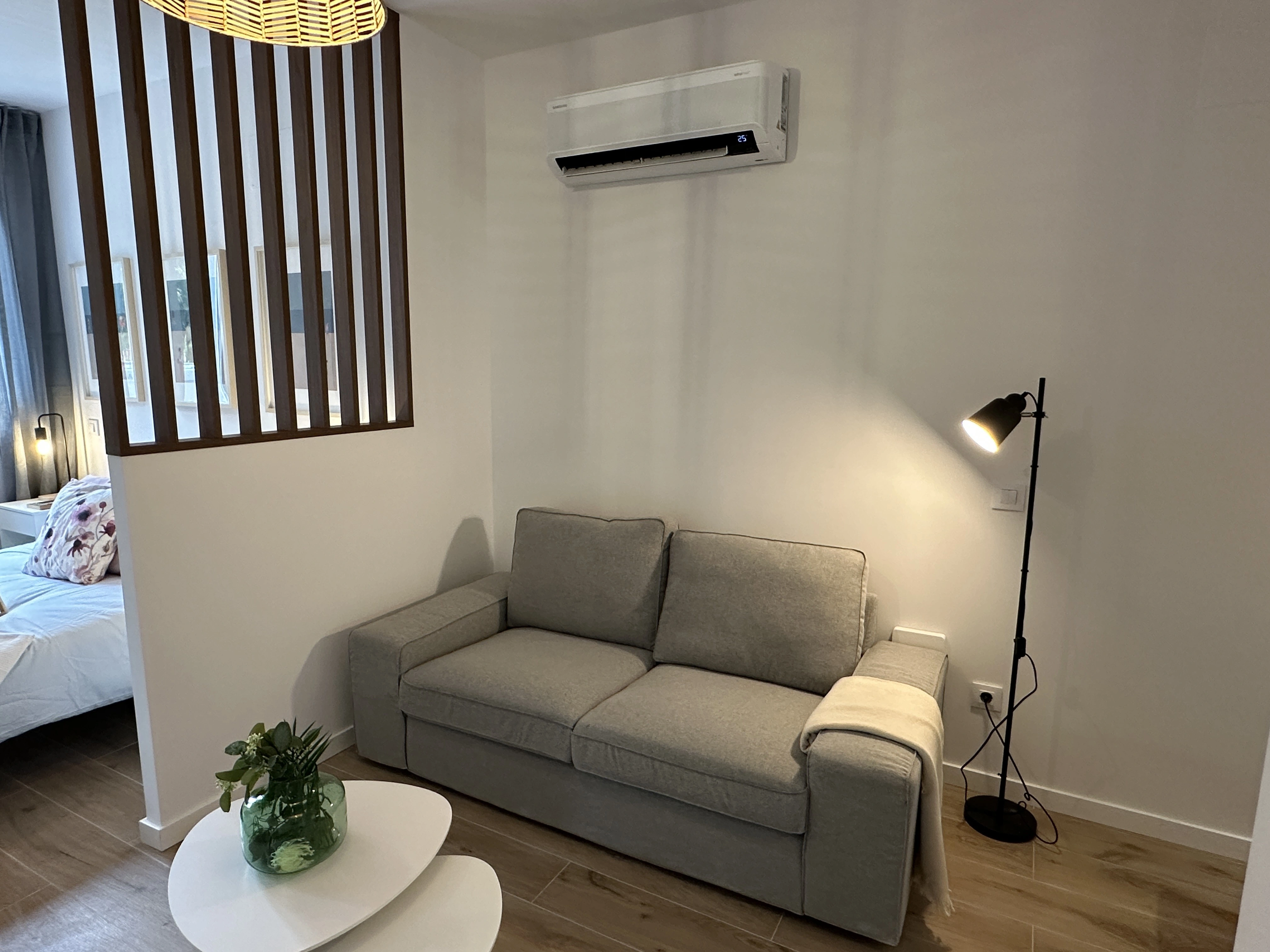 ¿Te imaginas vivir en un estudio nuevo, cómodo y con todo lo necesario para tu día a día? En Madrideasy, tu gestora inmobiliaria en Madrid para estudiantes y jóvenes profesionales, te presentamos este estudio recién renovado, listo para estrenar. Su salón-cocina de planta abierta cuenta con televisión, sofá, mesa de centro y una práctica barra con sillas donde podrás comer o estudiar. La cocina, moderna y equipada, incluye nevera, horno, microondas, vitrocerámica y almacenamiento suficiente. La zona de descanso, integrada en el mismo ambiente, dispone de cama, dos mesitas de noche y un amplio armario para organizar tus cosas. El baño está equipado con plato de ducha, lavabo, inodoro y espejo. Una opción fantástica si buscas un estudio en Madrid, renovado, con buena ubicación y pensado para tu comodidad.
