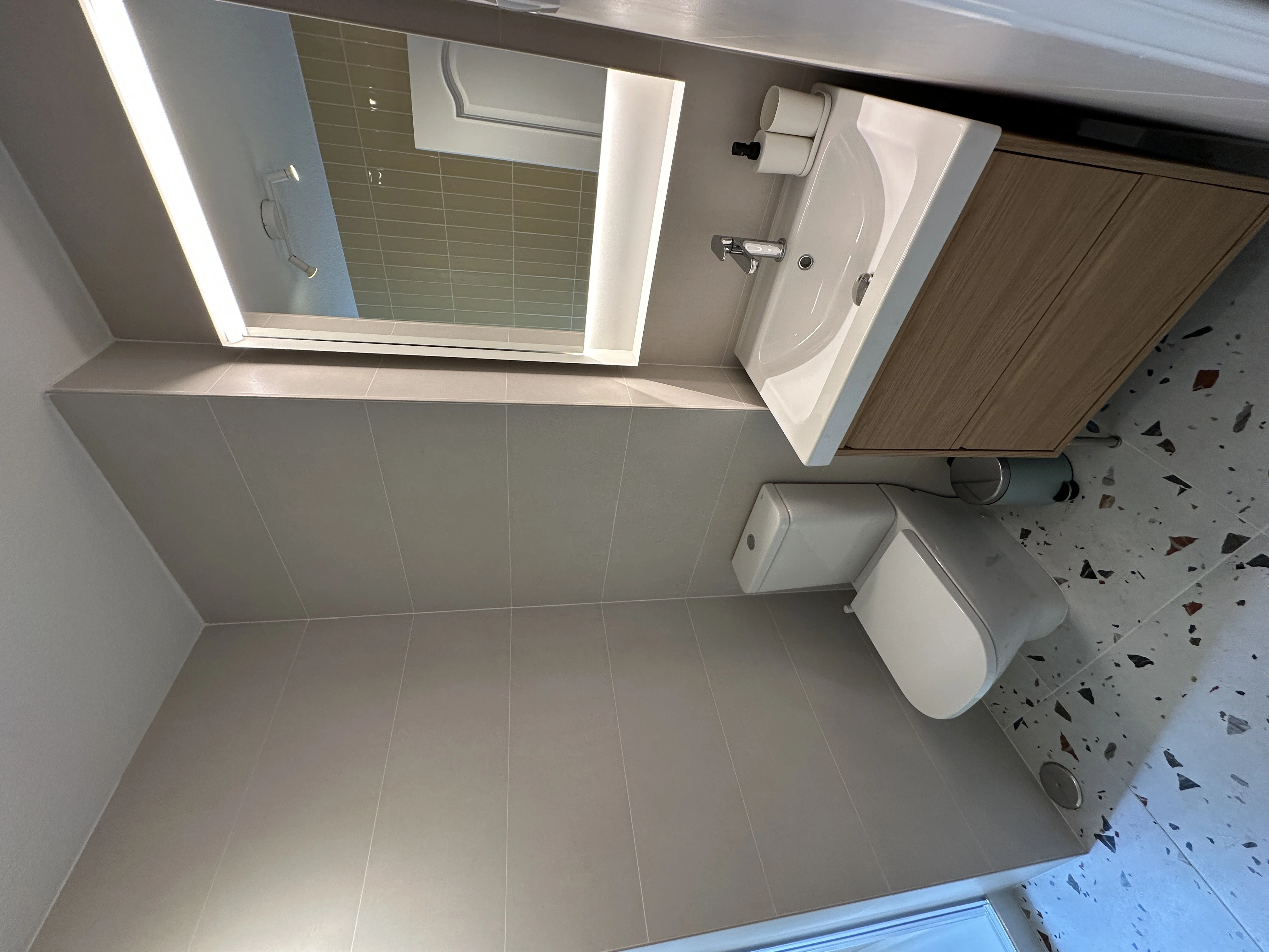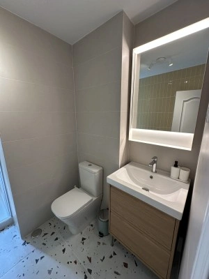 El baño está equipado con plato de ducha, inodoro y lavabo, ofreciendo confort y funcionalidad. Las 3 habitaciones individuales están amuebladas con camas confortables, escritorios individuales y armarios, proporcionando un espacio de descanso y estudio privado y bien organizado para cada estudiante.