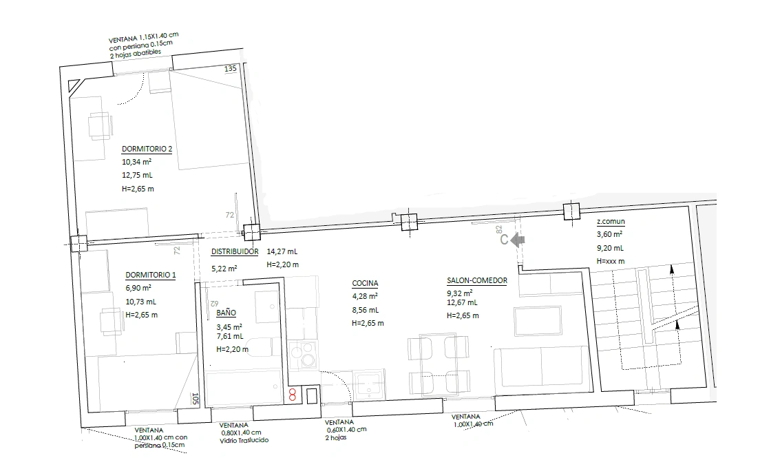 Este apartamento, recién renovado, es ideal para estudiantes que buscan un espacio moderno y funcional. Cuenta con dos habitaciones, una con una cama de 135 cm y la otra con una cama de 105 cm, ambas equipadas con escritorio y armario, perfectas para el estudio y el descanso. El salón-comedor es amplio y cómodo, y está equipado con un sofátelevisiónmesa de centromesa de comedor para cuatro personas y aire acondicionado, lo que garantiza una estancia agradable.