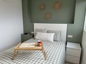 Dispone de dos habitaciones: una con cama doble, y la otra con cama individual. Ambas habitaciones cuentan con calefacción, aire acondicionado, armario y ventana, proporcionando un espacio privado, cómodo y bien iluminado para cada estudiante. Además, la limpieza de las zonas comunes está incluida en la cuota fija de suministros dos veces al mes, lo que garantiza un ambiente limpio y ordenado sin esfuerzo adicional.