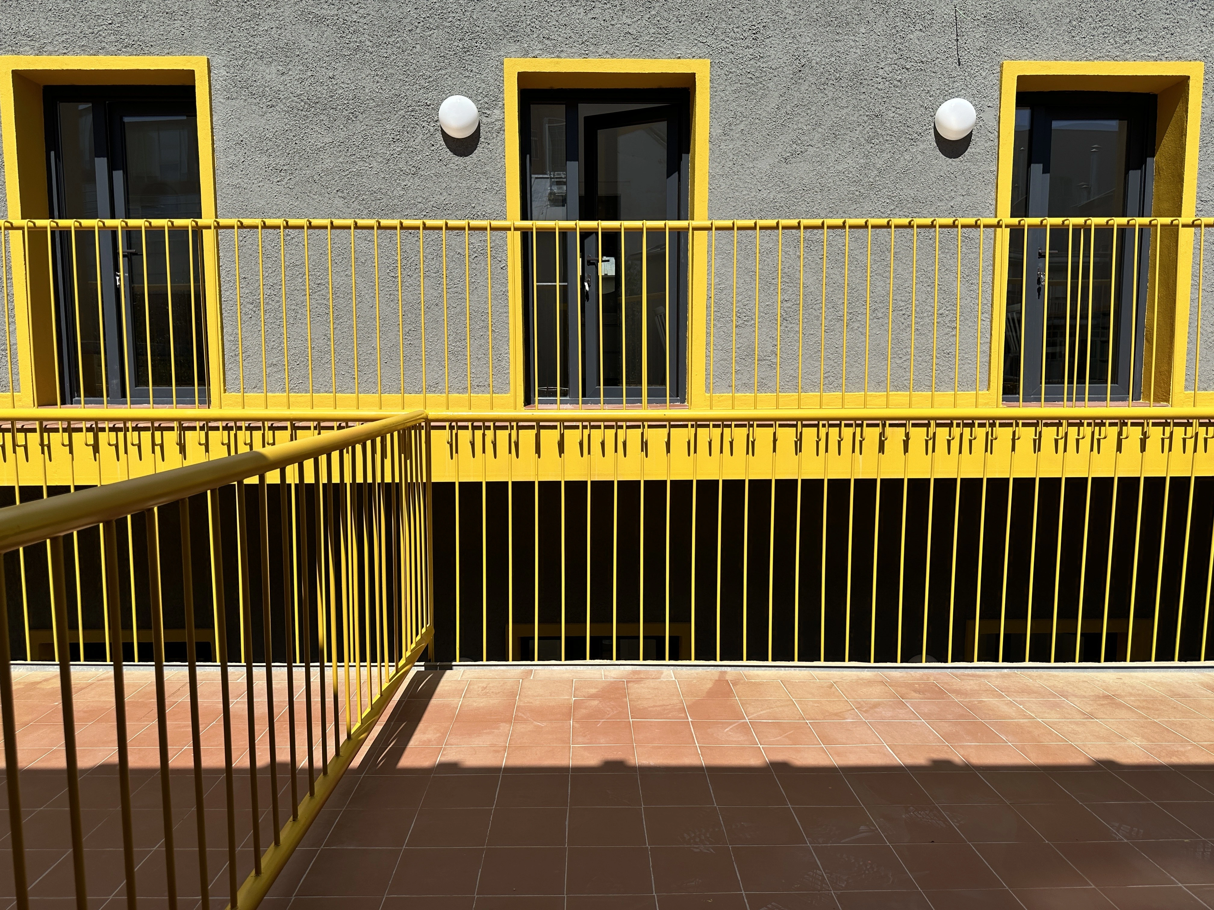 En la entrada del coliving, se encuentra un gran patio con dos árboles, plantas aromáticas y mesas de picnic, perfecto para relajarse o socializar. El edificio tiene dos plantas: