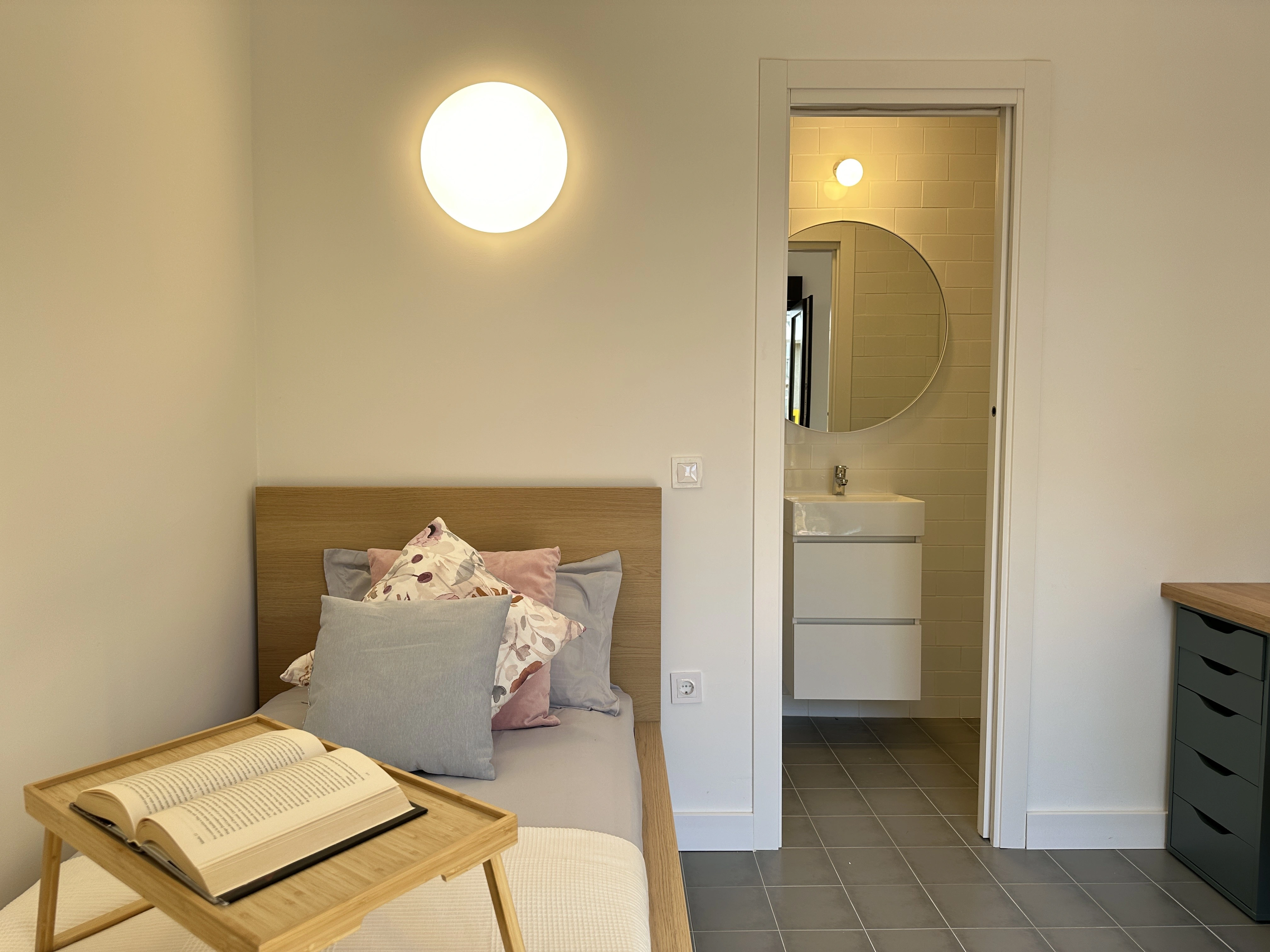 Este coliving está diseñado para ofrecer un equilibrio entre privacidad y comunidad, con espacios bien organizados y modernos.