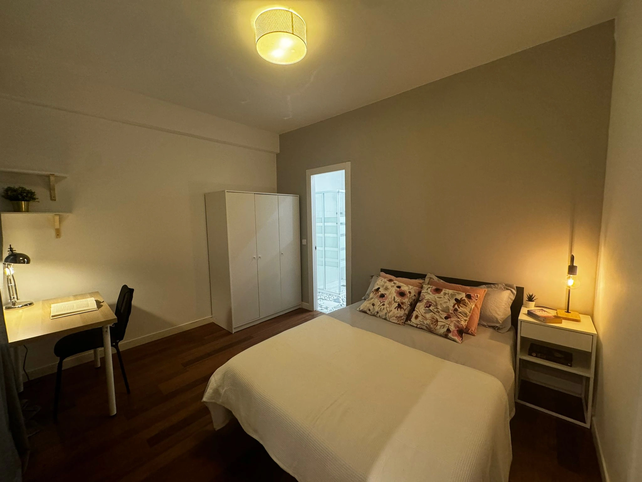 El apartamento también cuenta con un amplio salón-comedor, perfecto para compartir momentos con tus compañeros, y una cocina integrada en la misma estancia, situada en un pasillo para optimizar el espacio y facilitar la convivencia. Es una opción perfecta para estudiantes que valoran tanto la privacidad como la socialización en un entorno cómodo y funcional.